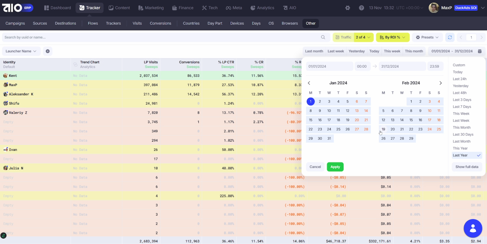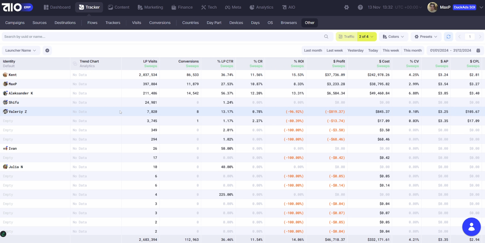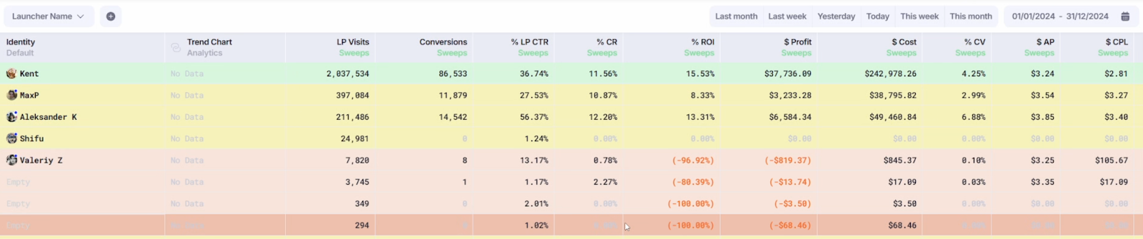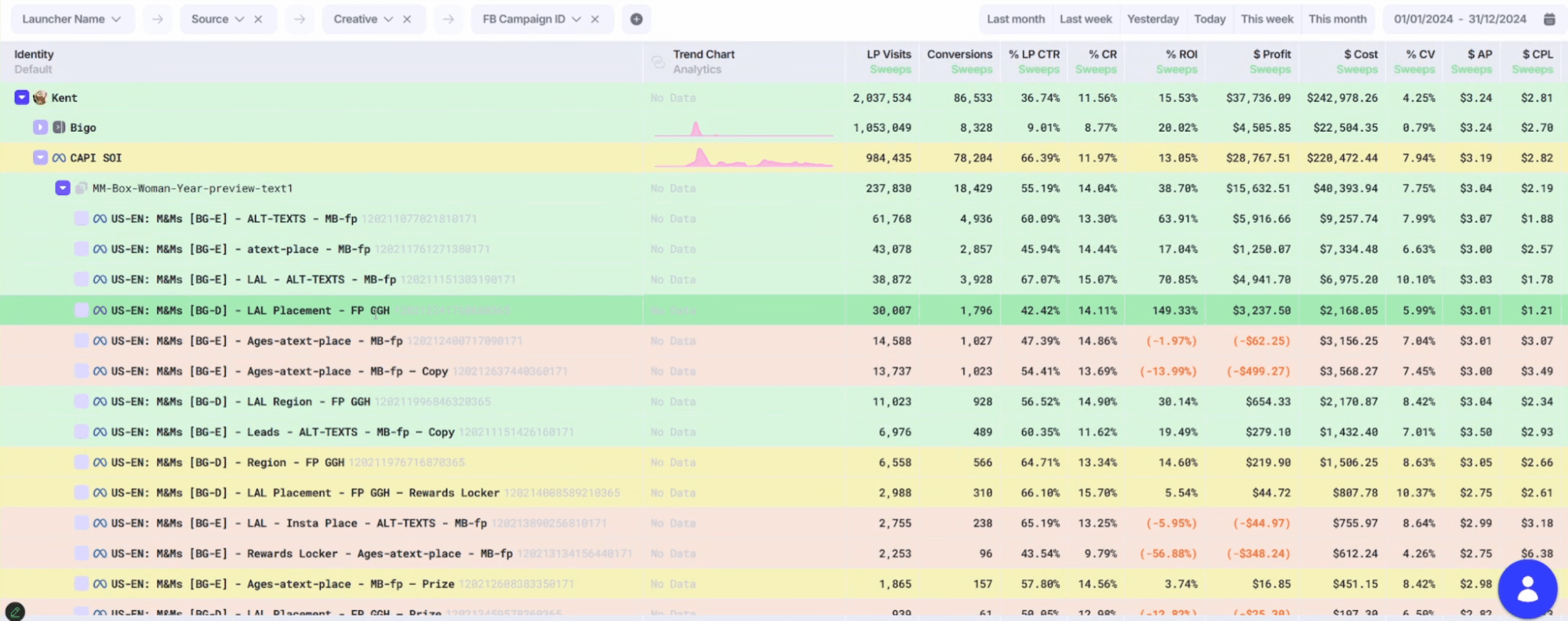 Такую отчётность можно строить по всем необходимым группировкам: по источникам, креативам, кампаниям и так далее. Это занимает не больше 5 минут, при этом все отображается очень информативно и понятно.