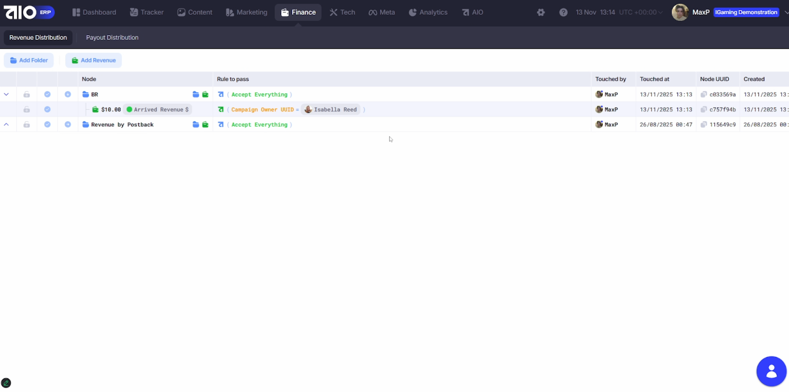 Здесь указываем, при каких событиях начисляется выплата и кому. Далее добавляем Revenue