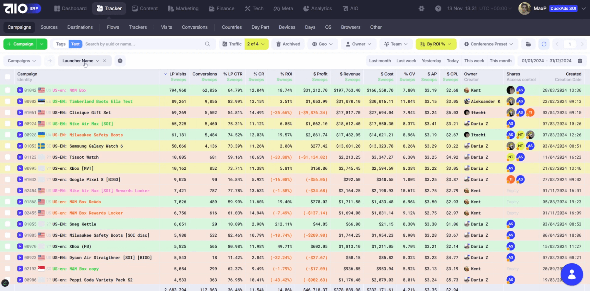 Собираем статистику по кампаниям, фильтруем по Launcher Name,