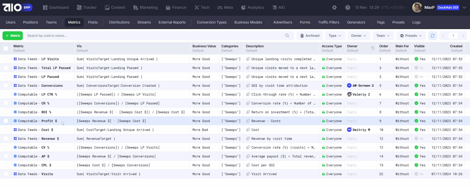 Это позволяет гибко настраивать доступ и в любой момент выдавать, ограничивать или просматривать права у пользователя или команды.Кастомные метрики пользователя