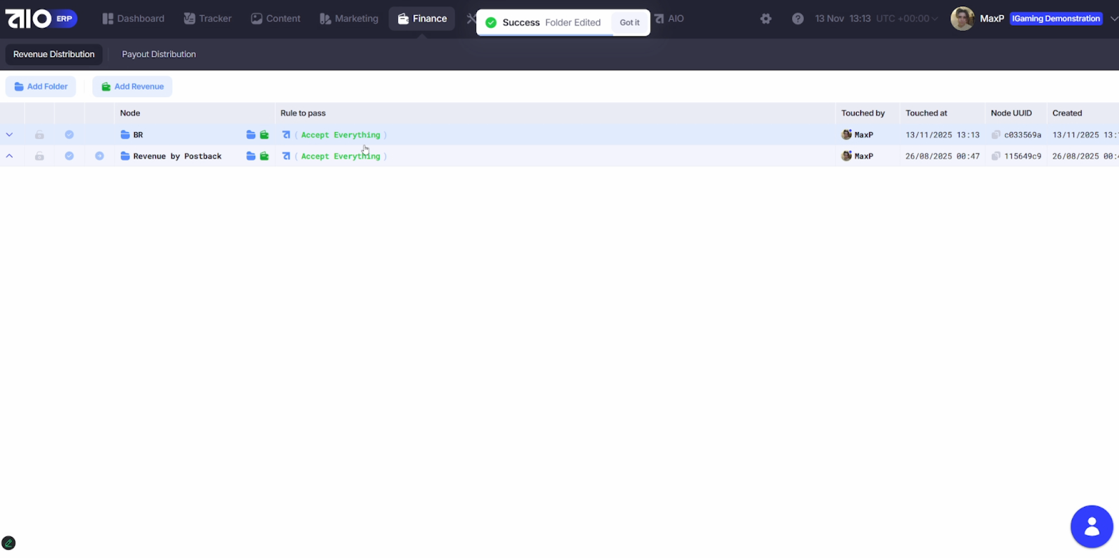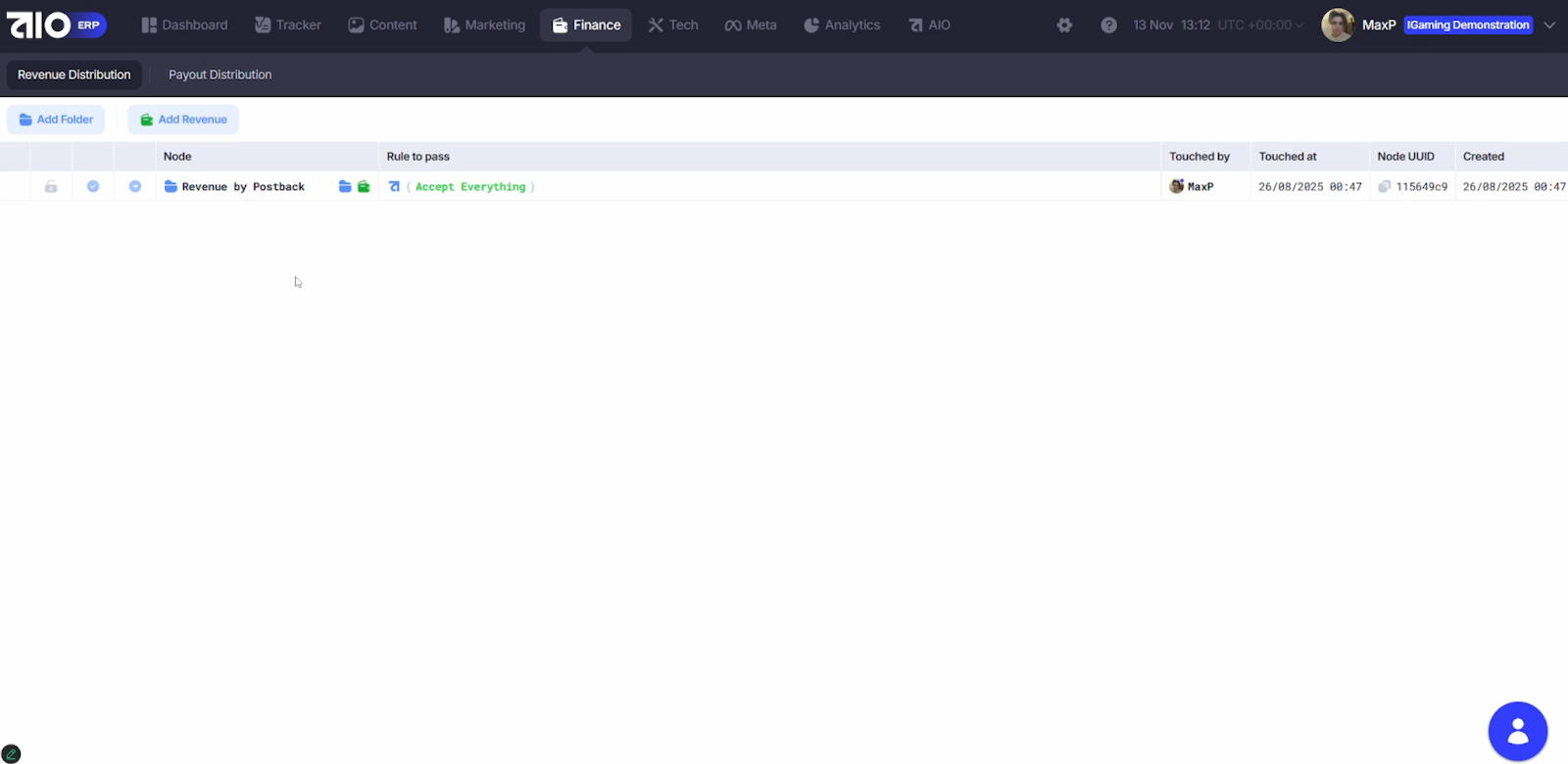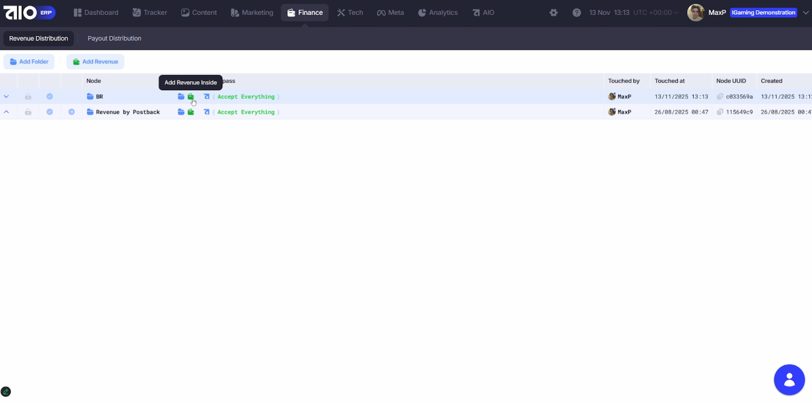 Блок построен по принципу иерархического дерева: вы создаёте ноды (папки) — по гео, типам трафика или командам — и настраиваете для каждой собственные правила выплат.