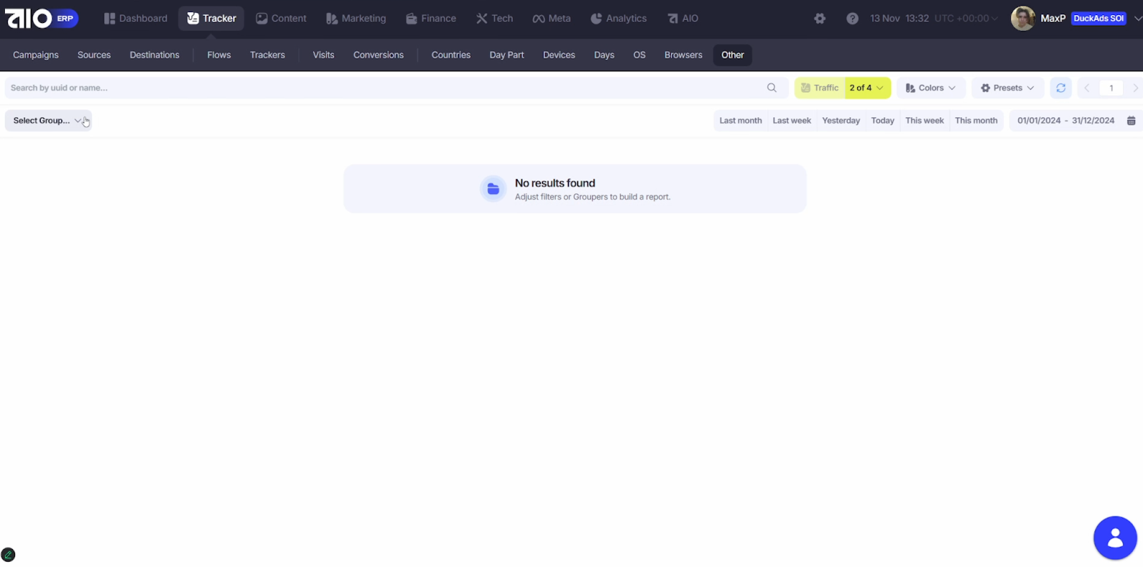 Если нужно создать собственный отчёт, переходим в Other - там пустая страница для кастомных таблиц.