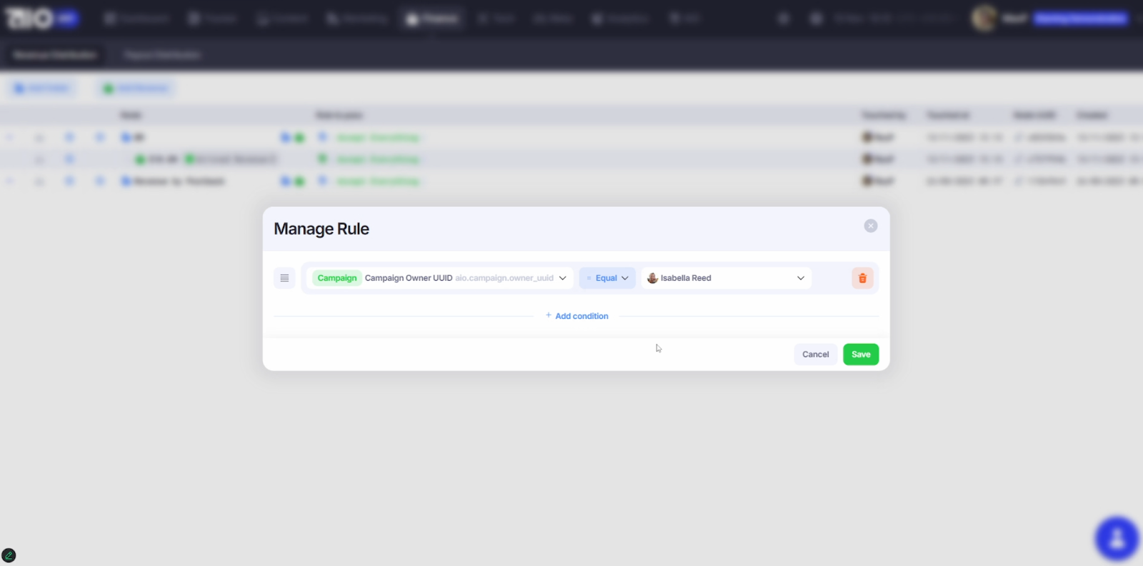 Добавляем условия (правила), нажав на Add Condition.