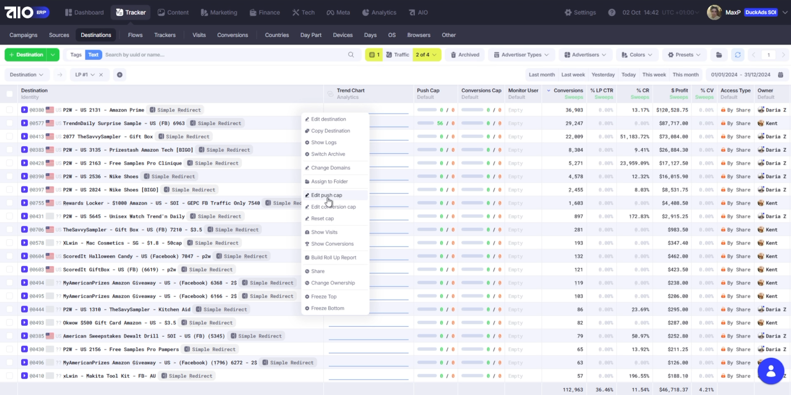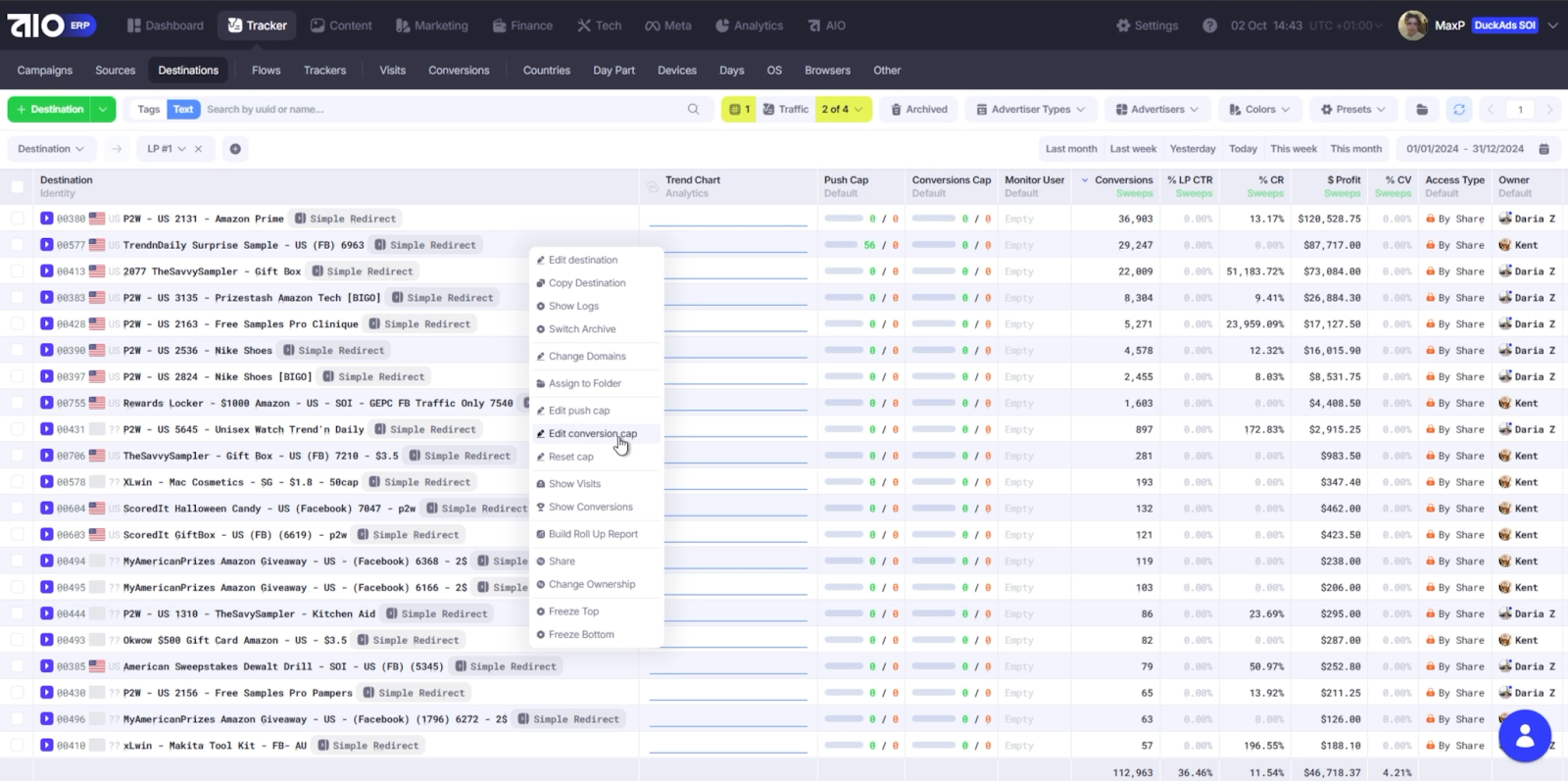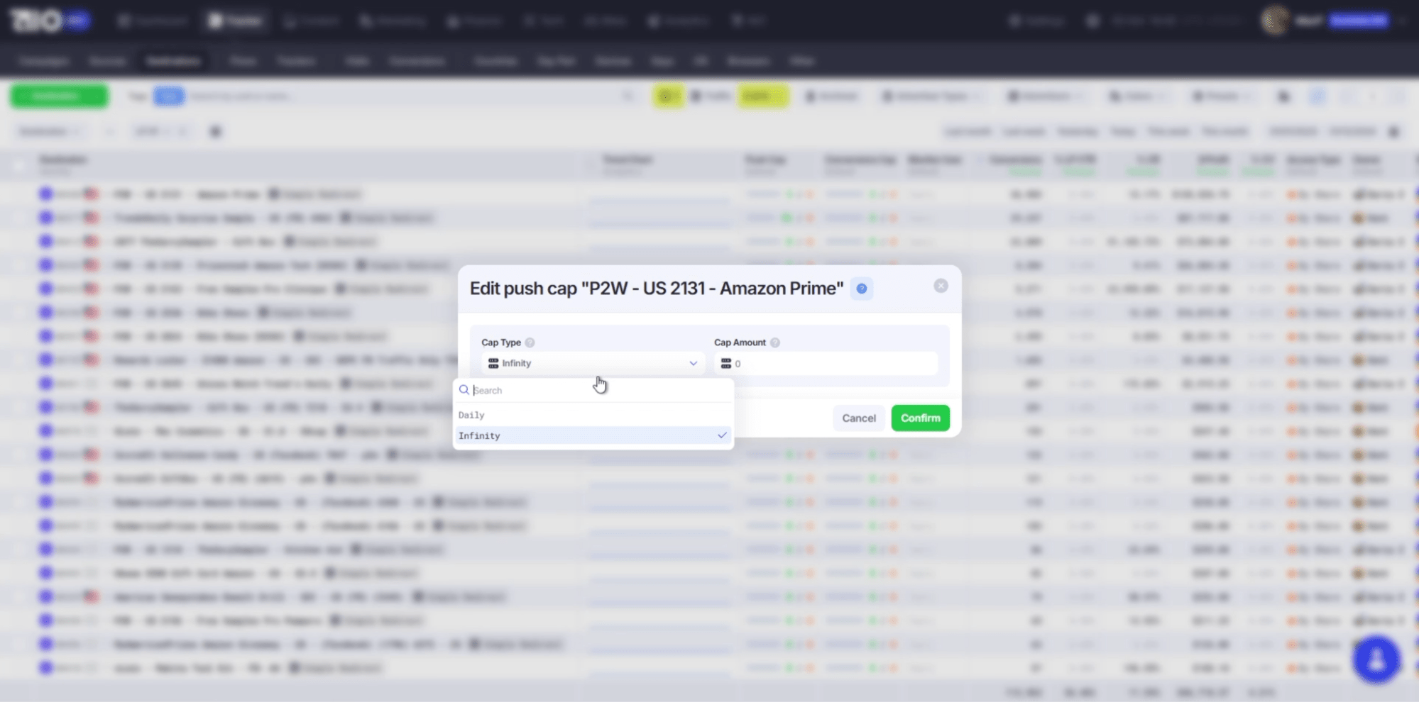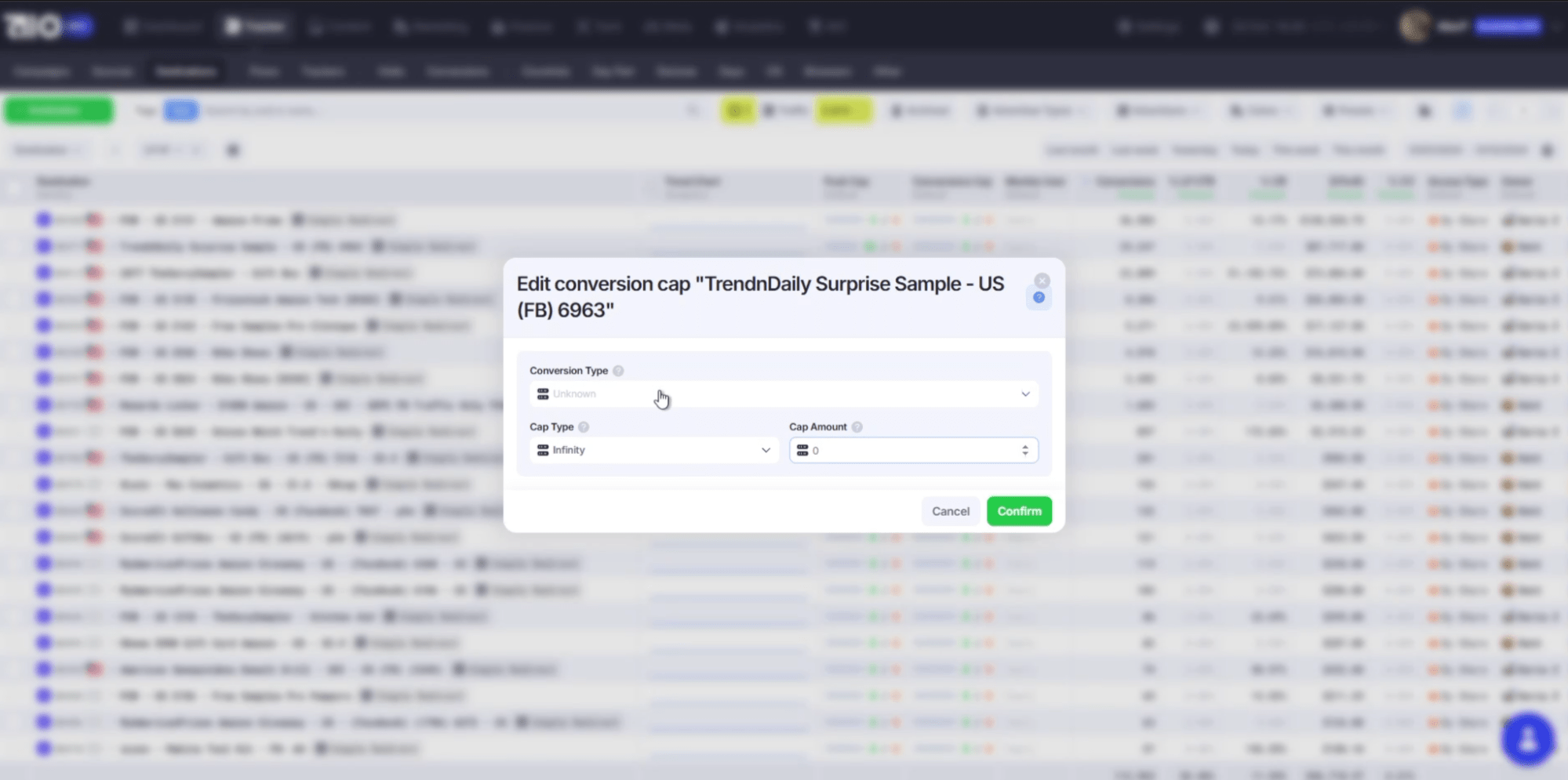 Здесь, в свою очередь, помимо типа капы и количества, вы устанавливаете тип конверсии. Самый простой пример типа конверсий в iGaming вертикали: регистрация или FTD.