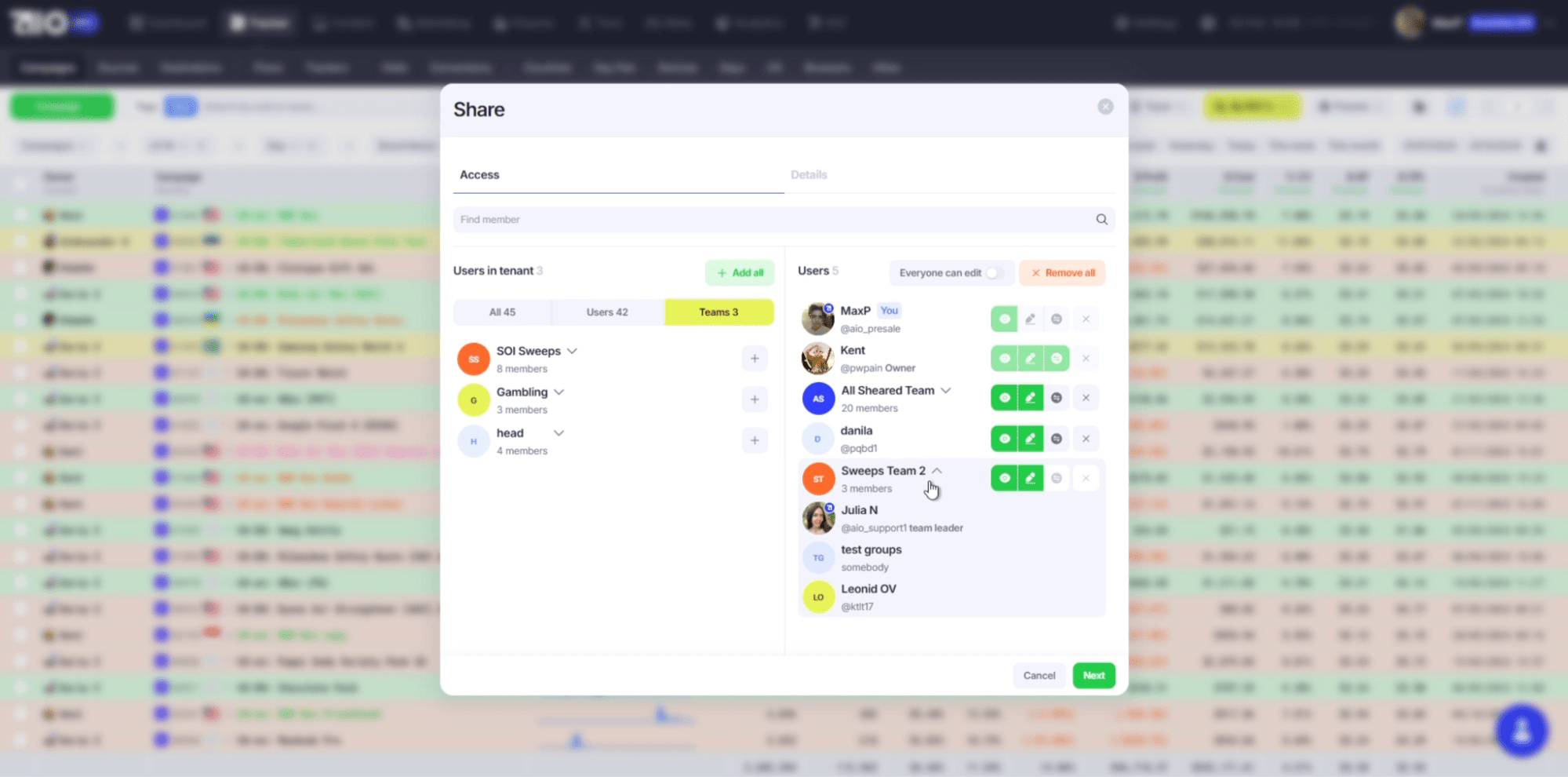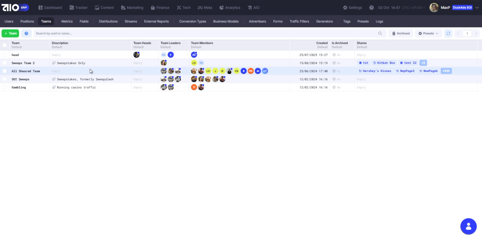 Менеджмент команды - еще одно подтверждение, что AIO сделана арбитражниками для арбитражников! И абсолютно не имеет значения, большая у вас команда или маленькая.