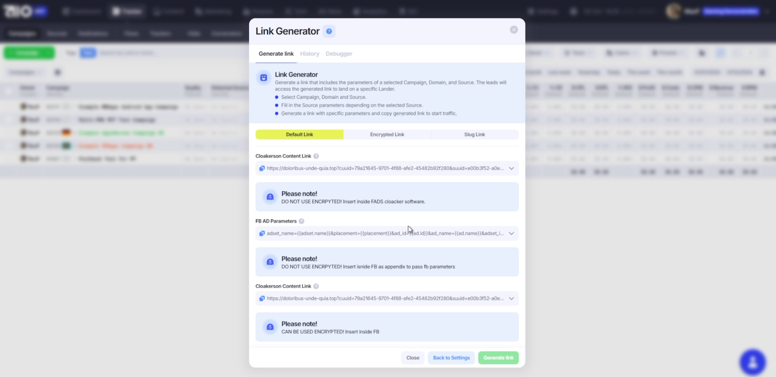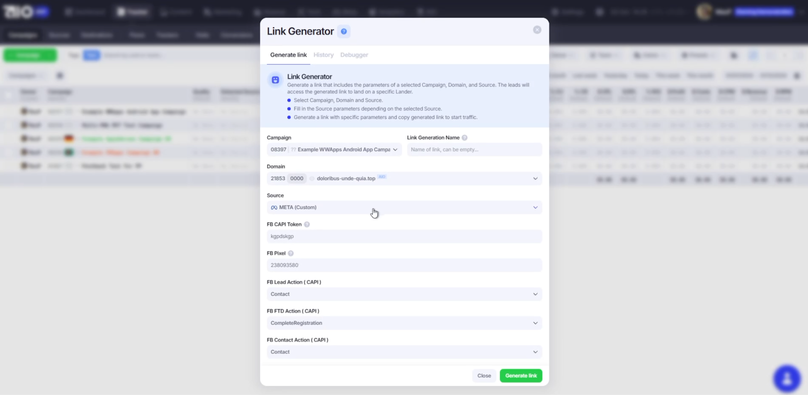 В итоге, вся настройка источника происходит после нажатия на Link Generator. Благодаря такому функционалу ошибки, вызванные человеческим фактором, минимизируются.