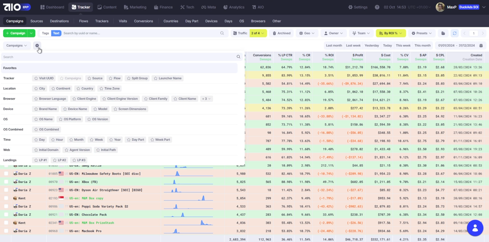 У нас открывается отдельное окно, в котором вы можете выставить различные фильтры и посмотреть, например, с каких девайсов был максимальный ROI, затем с каких лендингов и т.д., при этом в правой части этого окна у вас отображаются выбранные вами разбивки. По итогу вы получаете полностью плюсовой или минусовой сетап, который можете проанализировать с командой. Причем сбор и формирование такой статистики занимает крайне мало времени.