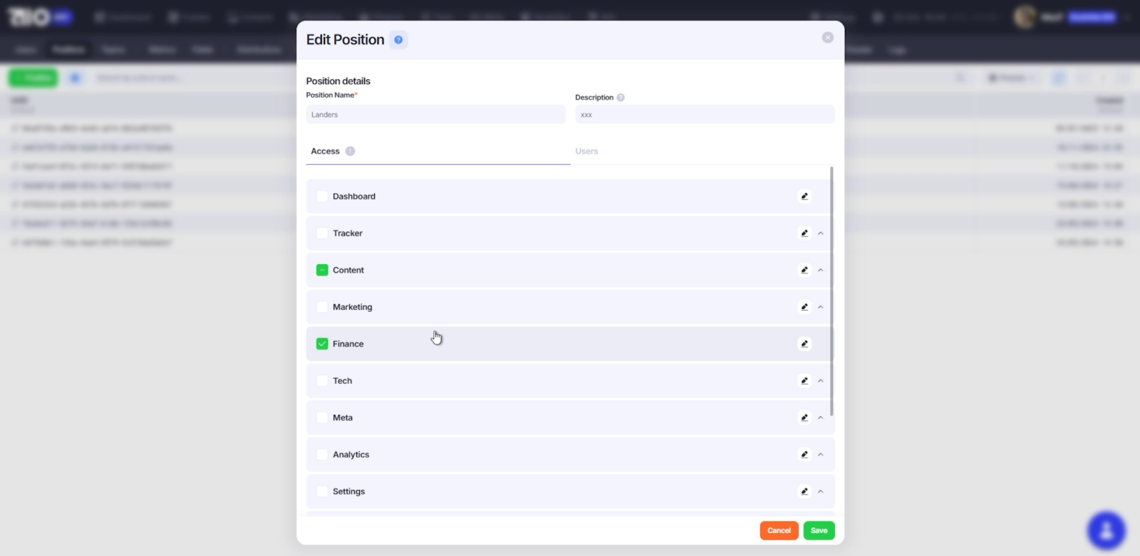 Вариации позиции пользователя настраиваются самостоятельно, исходя из необходимых доступов (Access), при этом вы сами выбираете, какие вкладки и подвкладки будут видны и имеете возможность их редактировать.