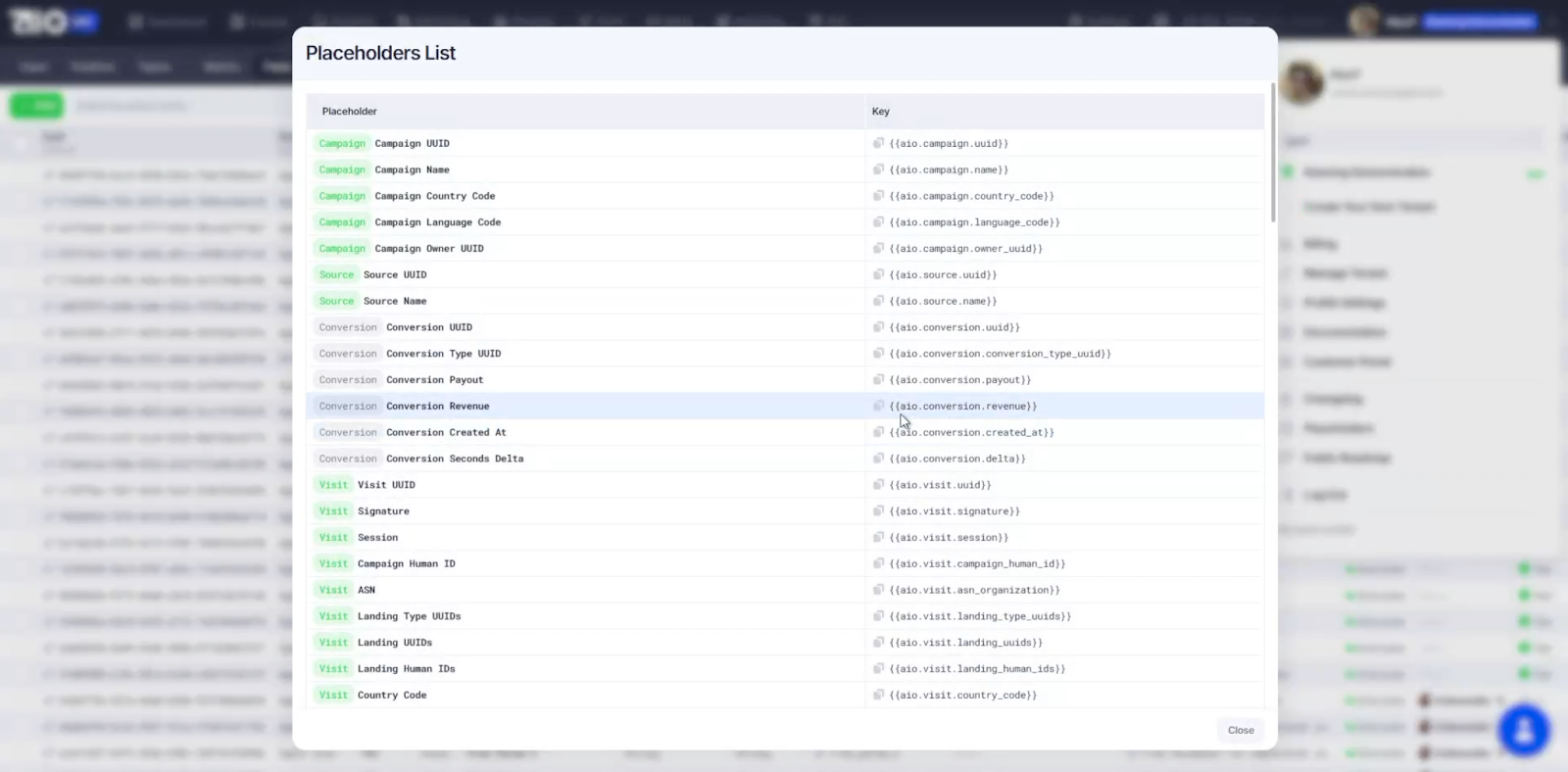 у вас автоматически появляются плейсхолдеры, привязанные к нему. Все полученные данные вы можете передавать на сторону рекламодателей или в свою CRM.