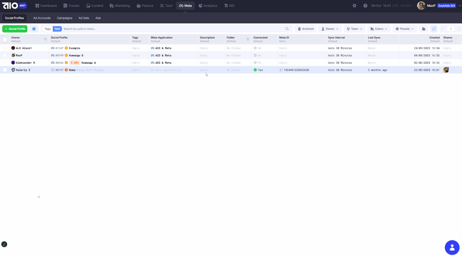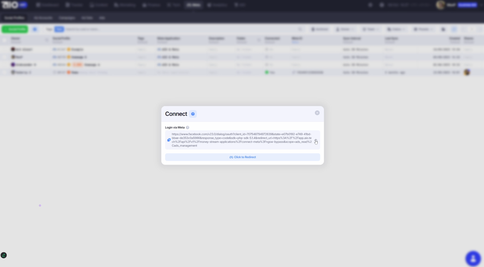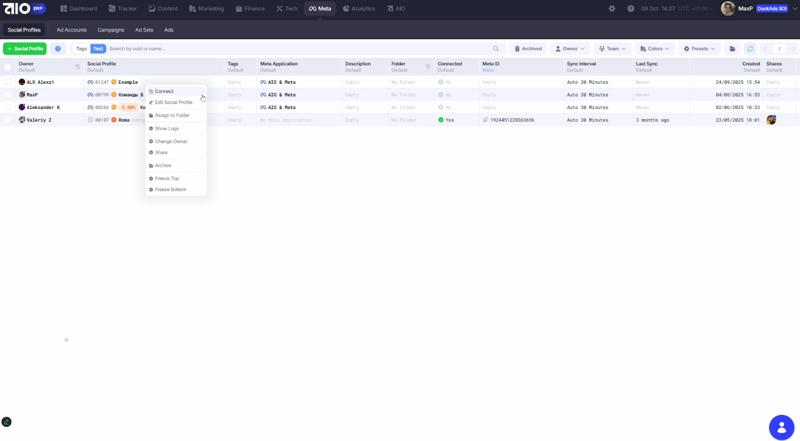 Команда AIO успешно прошла верификацию от Meta* из 450 чек-боксов на соответствие приложения уровню Facebook’а* - методы пуллинга, качество кода и т.д., и теперь соединение с Meta* дает возможность командам не только управлять большим количеством аккаунтов одновременно, но и отслеживать по ним статистику, работать с метриками, проводить глубокий анализ - все в одном месте.