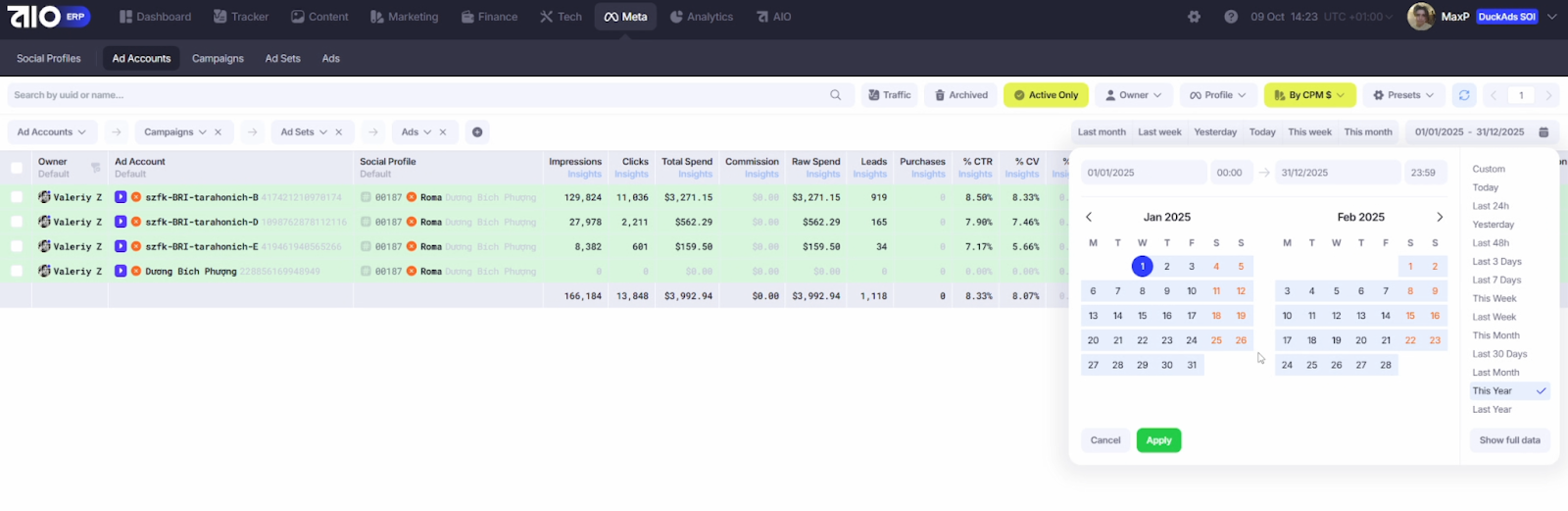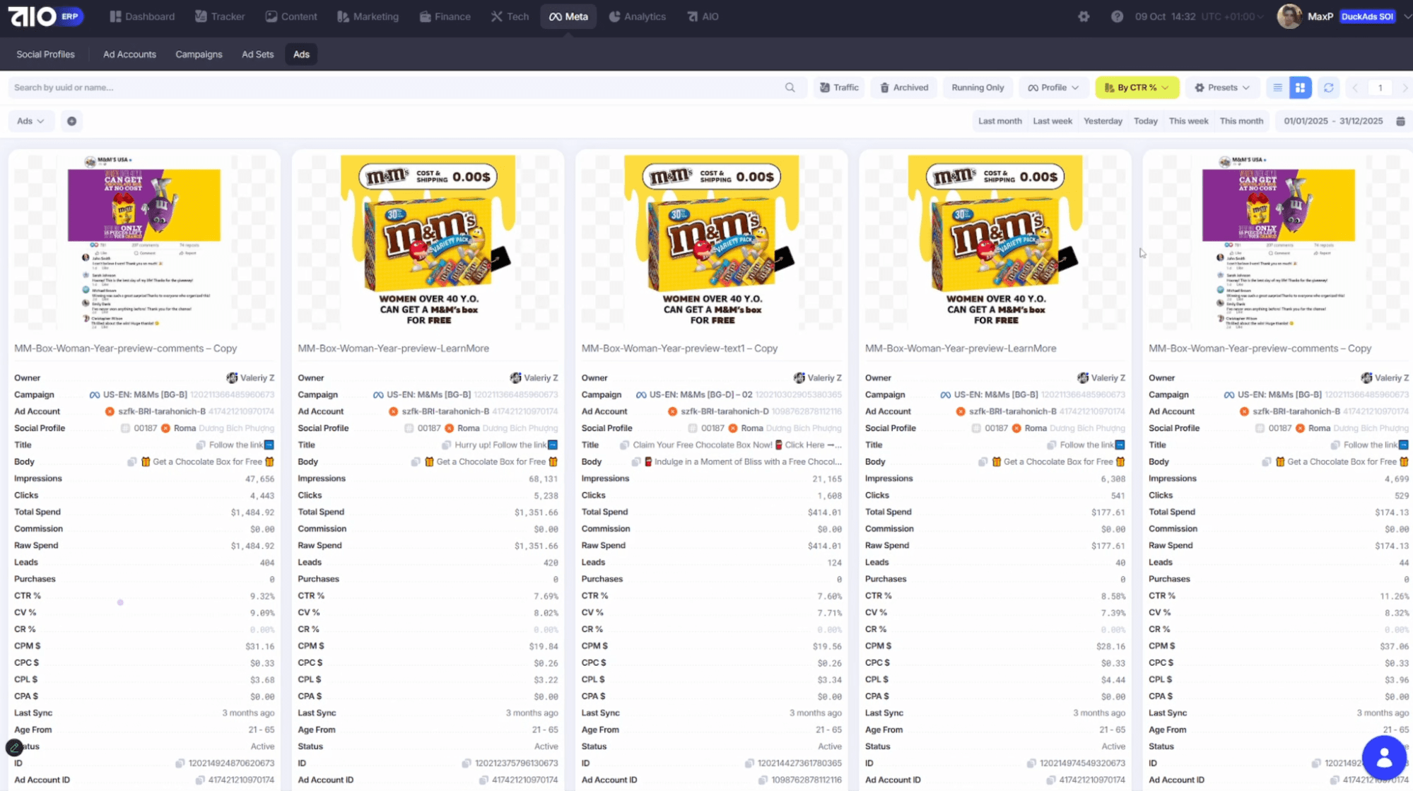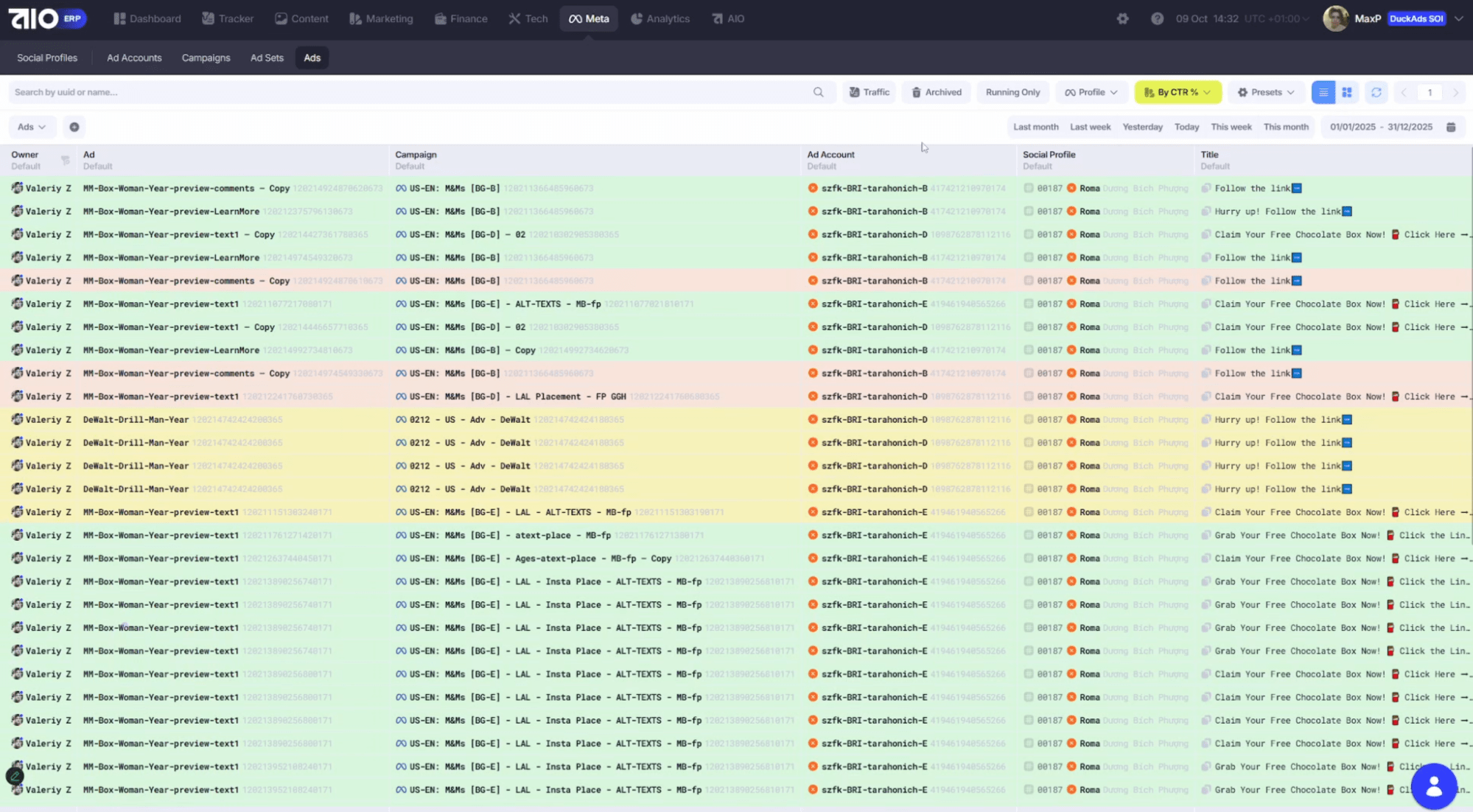 Команда AIO успешно прошла верификацию от Meta* из 450 чек-боксов на соответствие приложения уровню Facebook’а* - методы пуллинга, качество кода и т.д., и теперь соединение с Meta* дает возможность командам не только управлять большим количеством аккаунтов одновременно, но и отслеживать по ним статистику, работать с метриками, проводить глубокий анализ - все в одном месте.