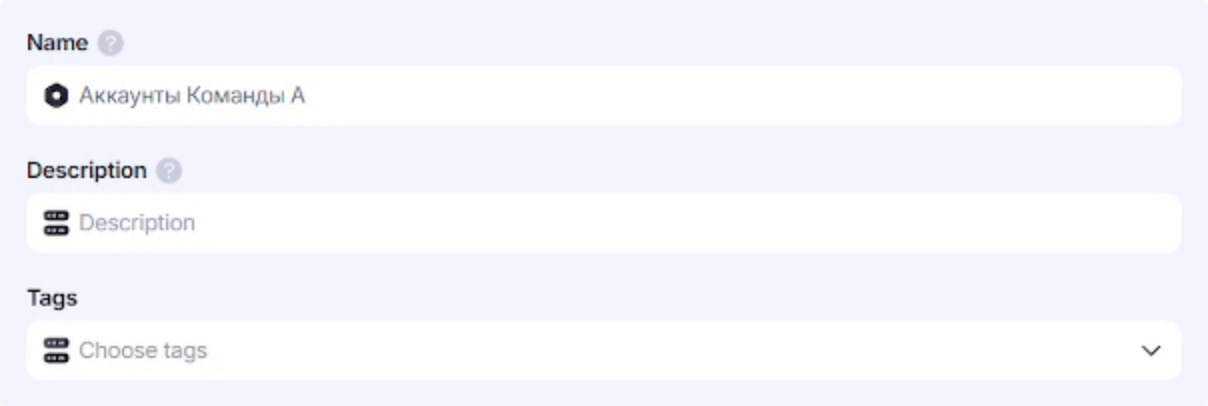 Заполняем поля: name, description, tags - это стандартные поля в нашем сервисе