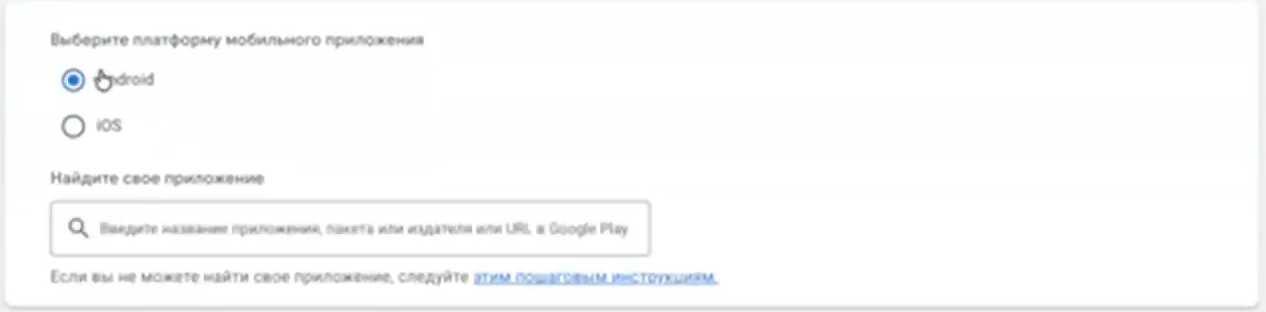 Очень важно выбрать нужную платформу – в нашем случае это Android. После чего становится активно поле поиска приложения где выбираем наше приложение OnCredit.