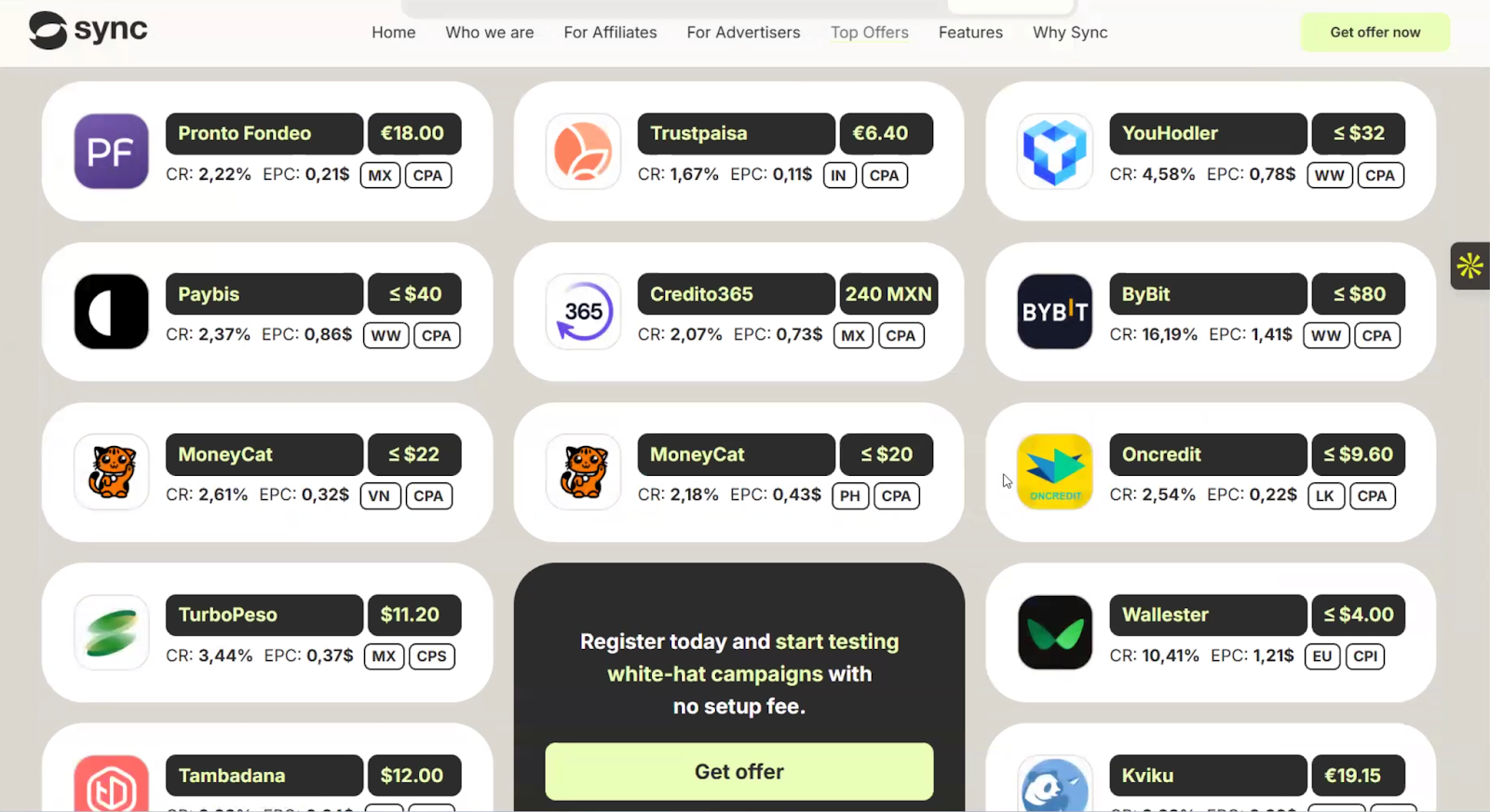 Рассматривать офферы и саму вертикаль мы будем на основе офферов партнерской сети Sync, которая специализируется как на веб-офферах, так и на In-app приложениях на бурж рынок для белых рекламодателей в вертикали финансы – приложения банков и loan-компаний (заемы).