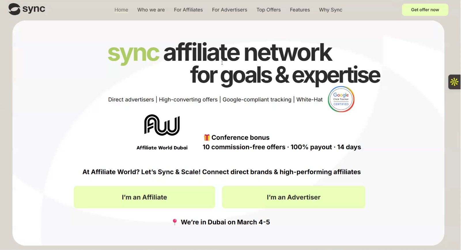 Sync – одна из 33 аффилиат-сетей в мире, аккредитованных Google как верифицированный Click Tracker.