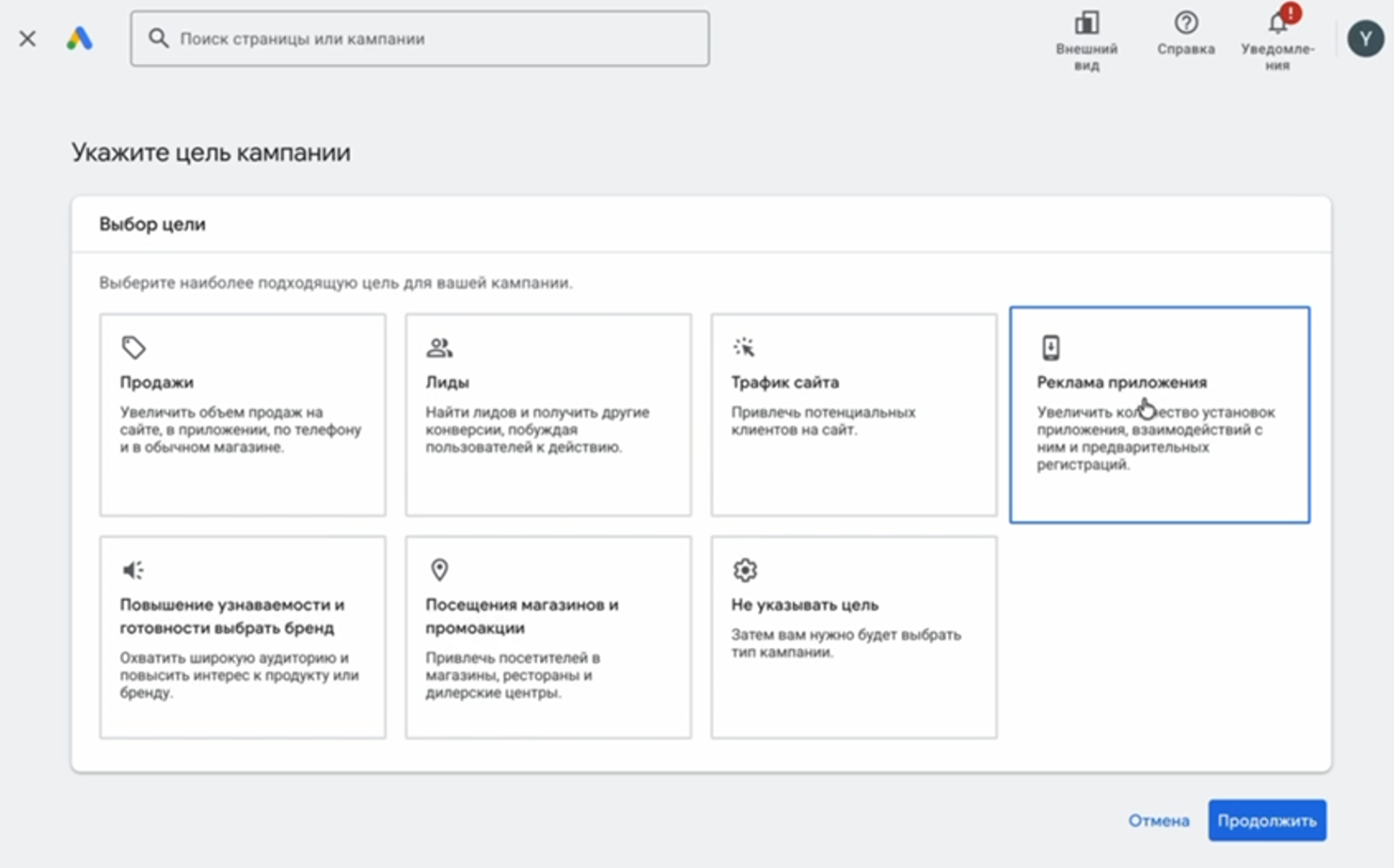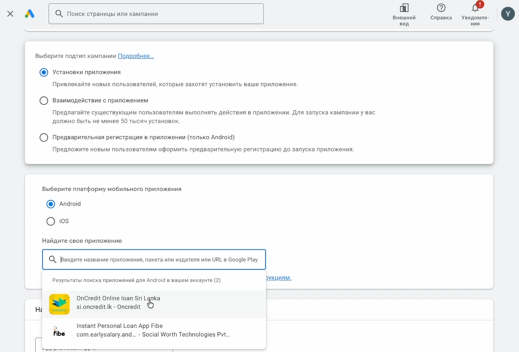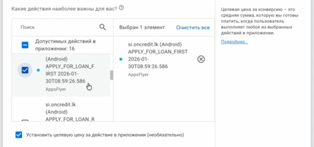 Тут как раз и нужна была связь GoogleAds и Appsflyer, без нее не получится выбрать нужно приложение.