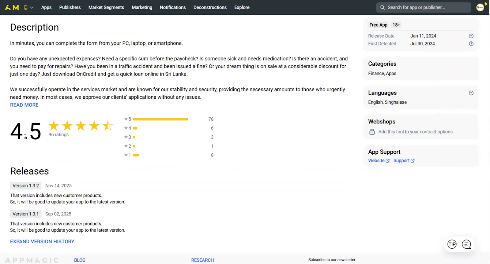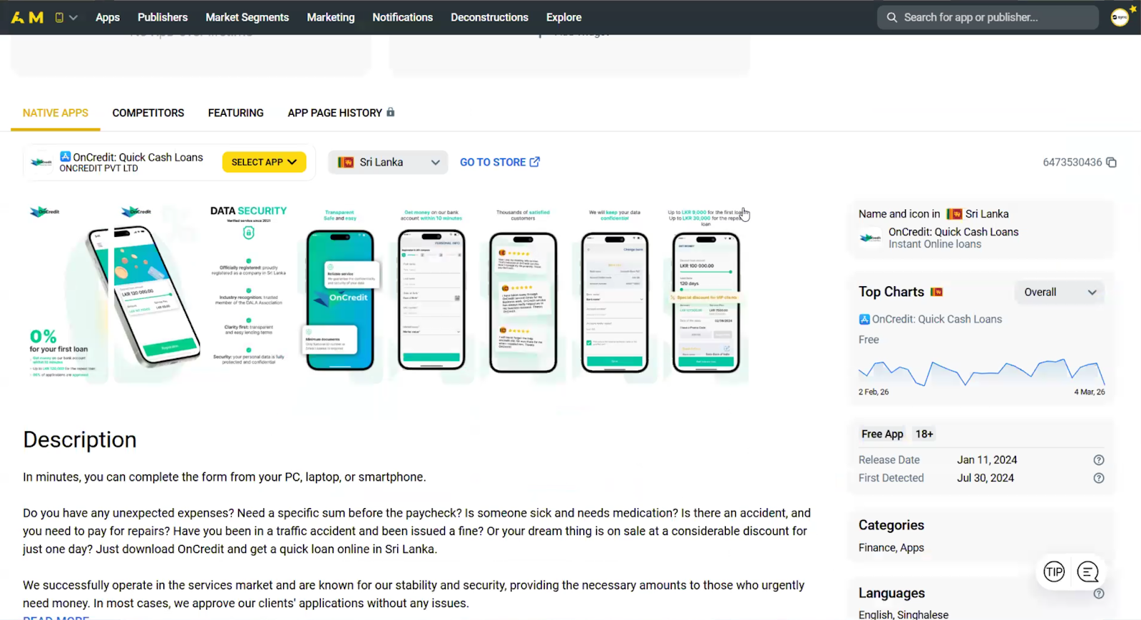 В качестве примера будем сегодня разбирать приложение Оncredit – это приложение Лоунс-компании на Шри-Ланке. Что важно, да, при выборе оффера нужно учитывать статистику, однако статистика собирается на основании всех источников и отображается средняя, но и приложения льются всегда по-разному.