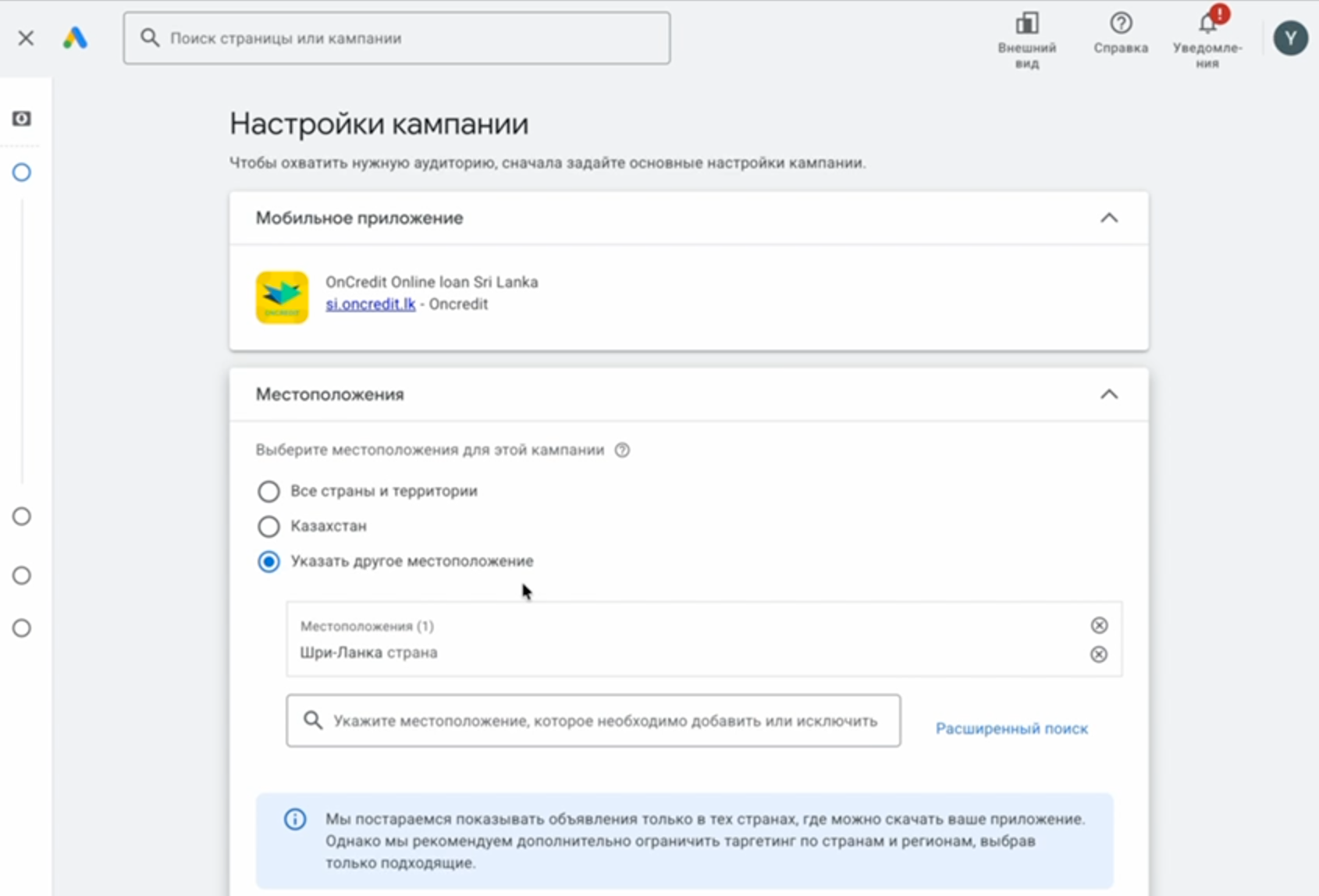 Если ваш оффер поддерживает мультигео и вы хотите добавить несколько стран, Google позволяет это сделать.