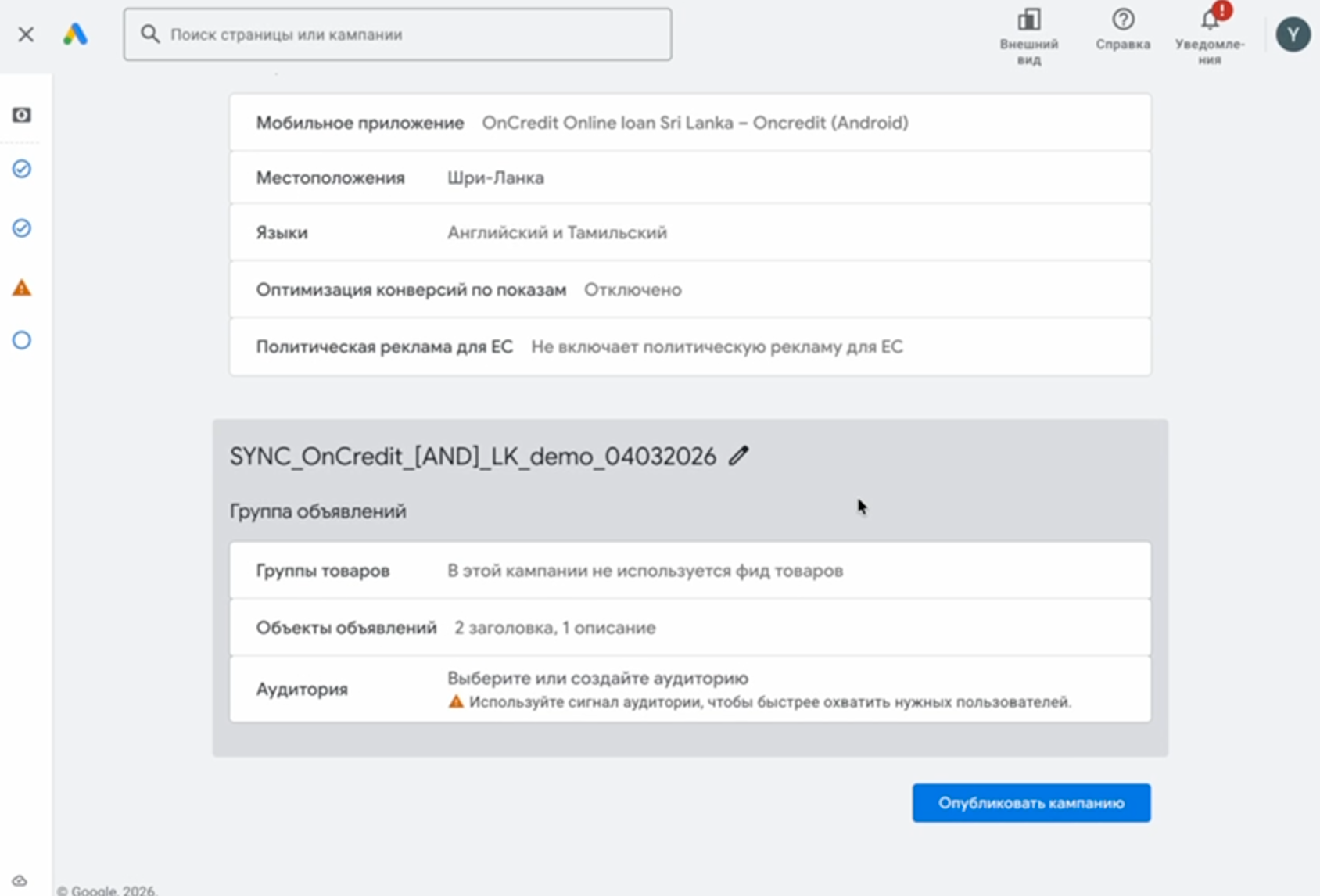 И нажимаете Опубликовать кампанию, после чего кампания уходит на модерацию.