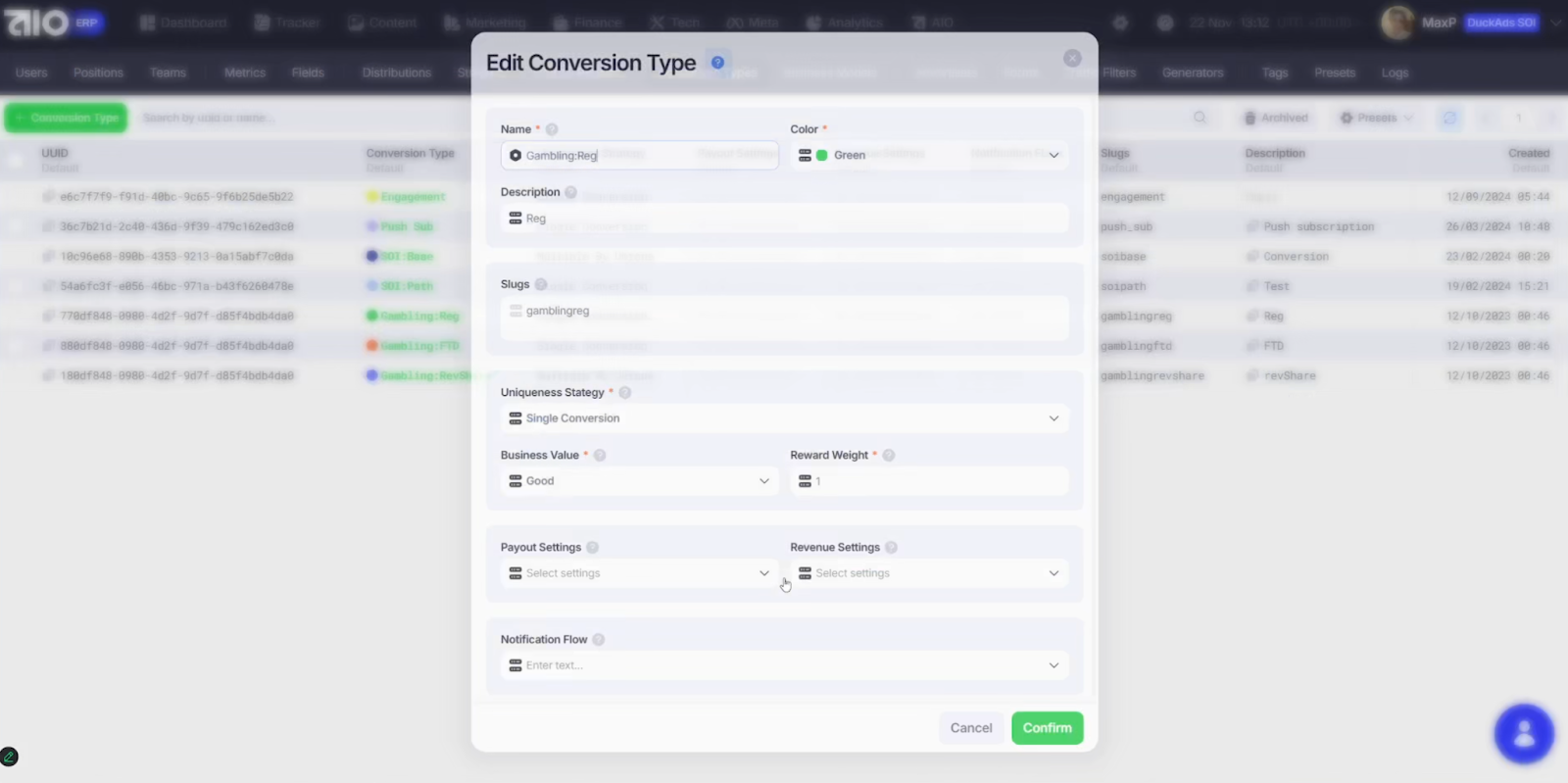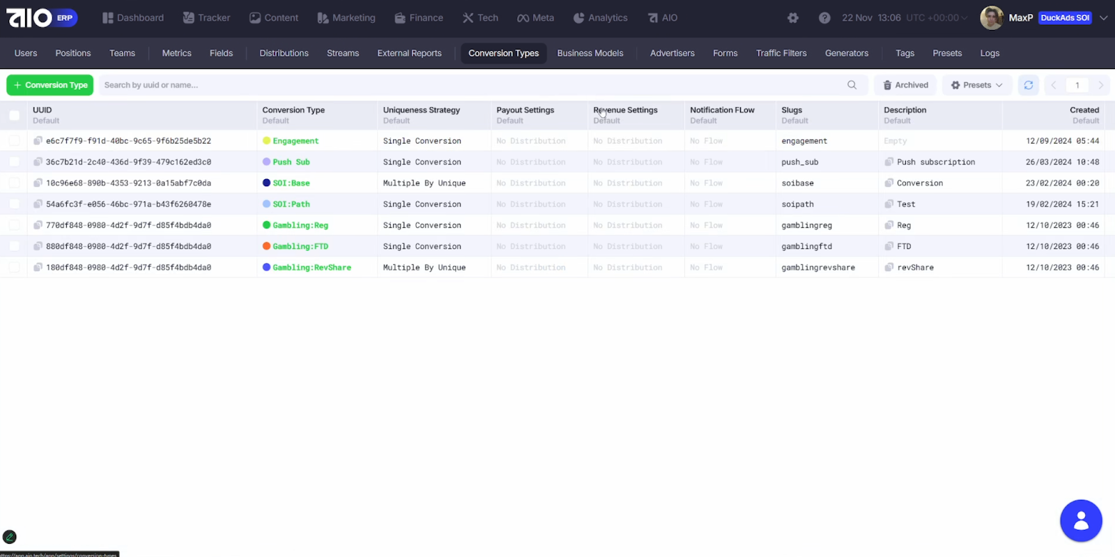 Дополнительно есть возможность «общаться» с платформой AIO. Нажмите правой кнопкой на интересующей вас конверсии и выберите Edit Conversion Type.