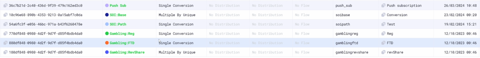 Но что, если до регистрации есть множество других действий (промежуточных конверсий), которые можно передавать в источник? Возникает логичный вопрос: насколько это выгодно? Как правило, заливы строятся на предположениях по связке: этот креатив + этот лендинг + этот рекламодатель = профит. По сути, это «стрельба по воробьям из пушки»: вы фиксируете конечное действие (регистрация, депозит, покупка), но не понимаете, что происходило до этого момента. Дополнительные конверсии снимают предположения и позволяют действовать на основании фактических показателей, передавая больше данных источнику. Это формирует более релевантную аудиторию и дает статистику по тому, что на самом деле работает. Комбинации уже строятся не просто из «креатив + лендинг + рекламодатель», а включают дополнительные параметры: домен, возраст пользователя, время, проведенное на лендинге, время суток и так далее. На основании этих переменных вы оптимизируете заливы.