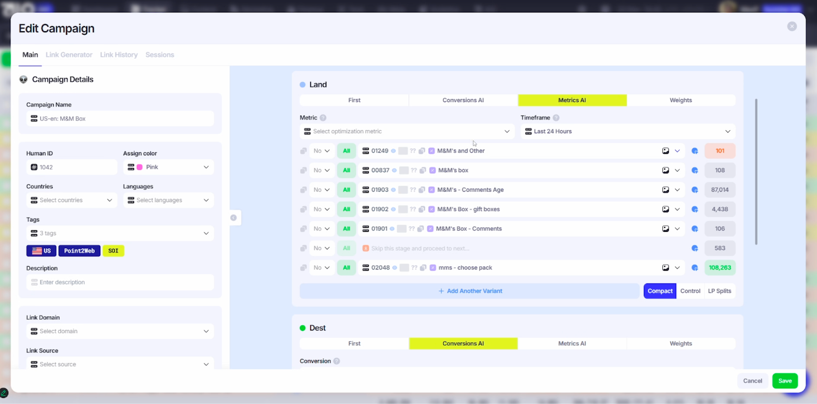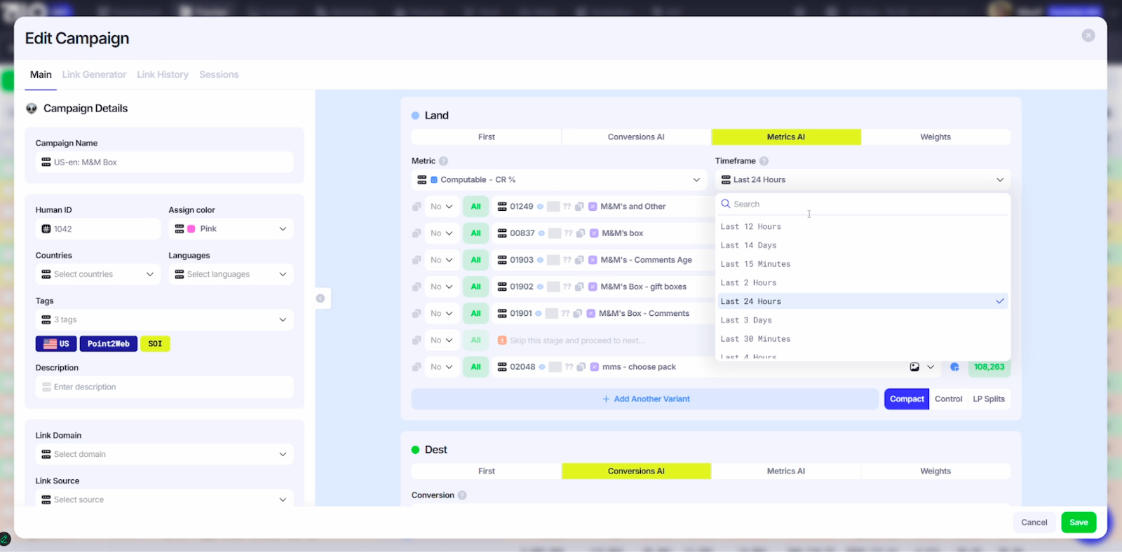 Например, вы выбираете лендинг с лучшим CR% за последние три дня и запускаете на него трафик. Три дня система оптимизируется, и вы видите лучший результат. По итогу либо оставляете его, либо сбрасываете оптимизацию и запускаете тест заново.