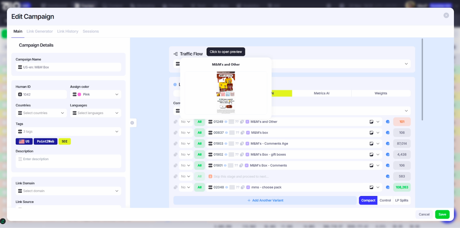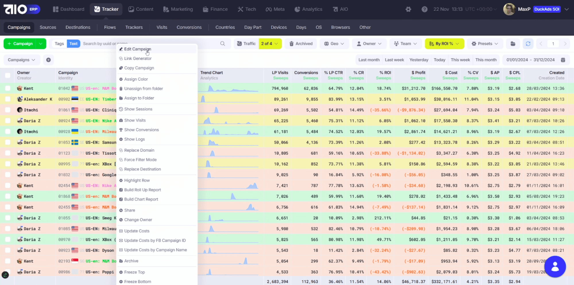 Рассмотрим, как это работает. Перейдем в Tracker - Campaigns и зайдем в любую кампанию.